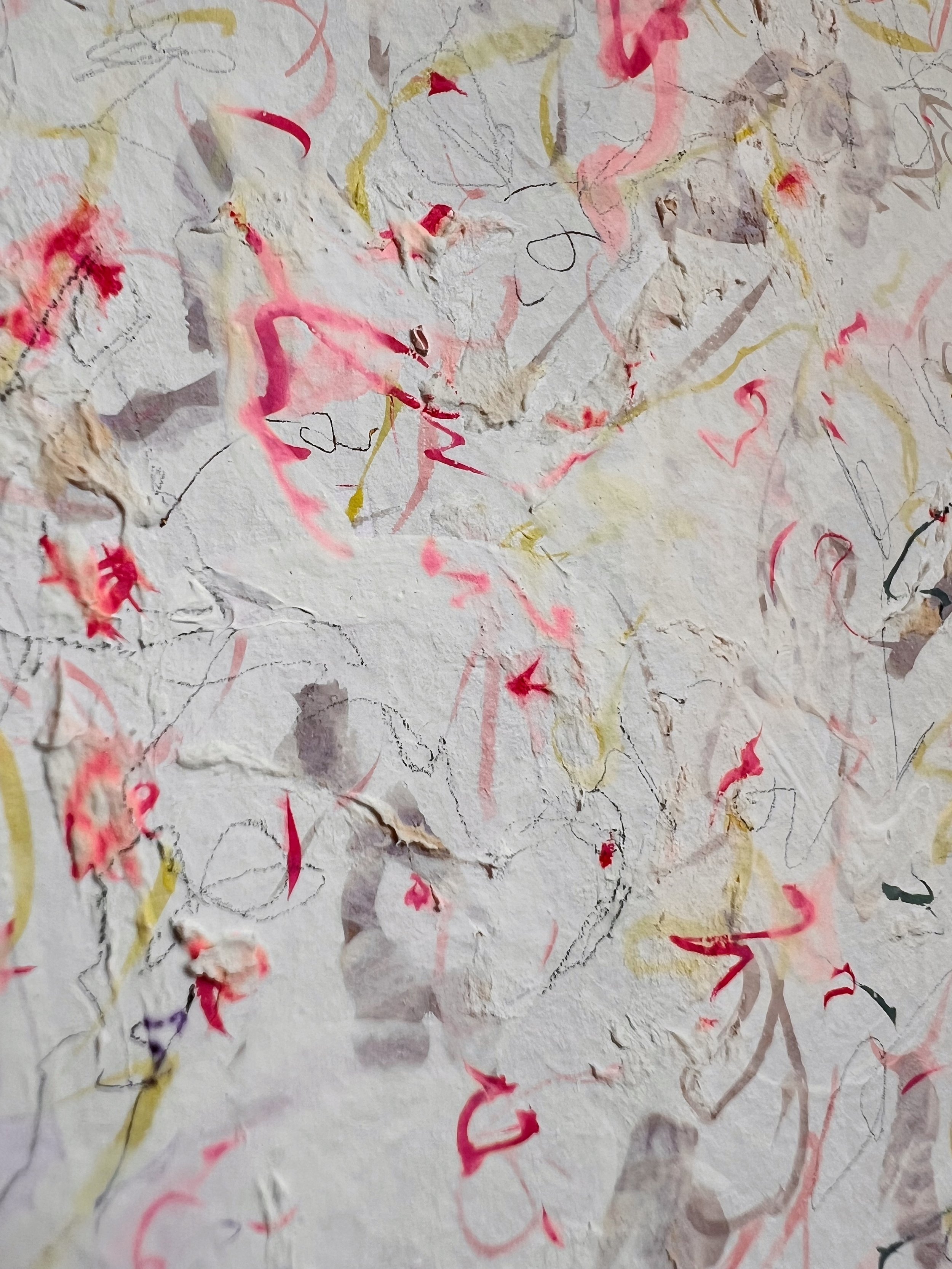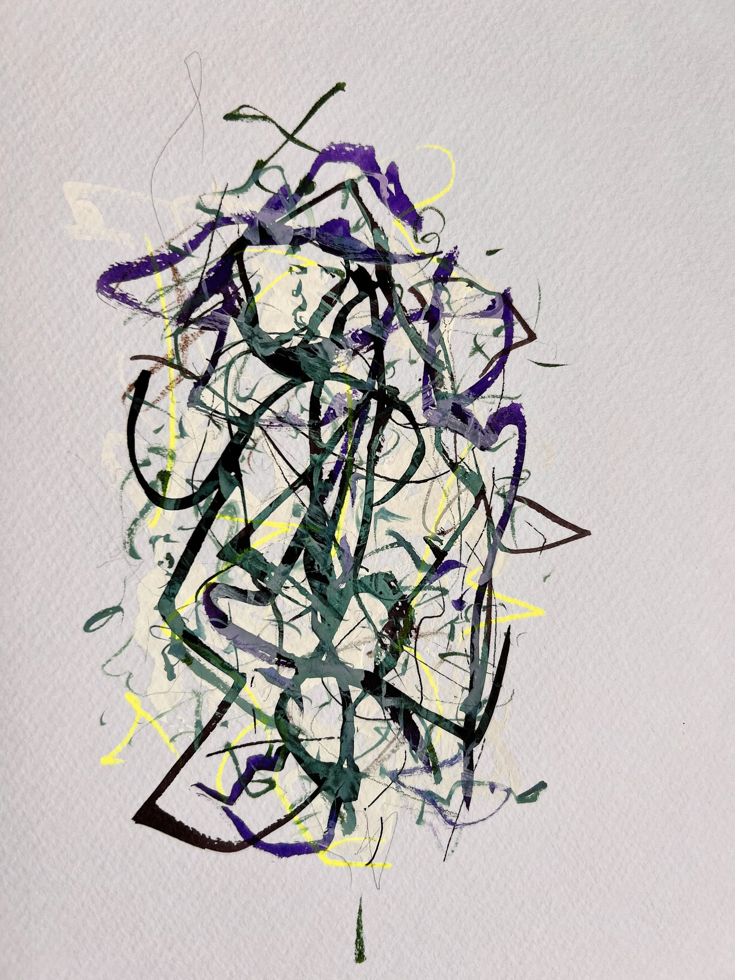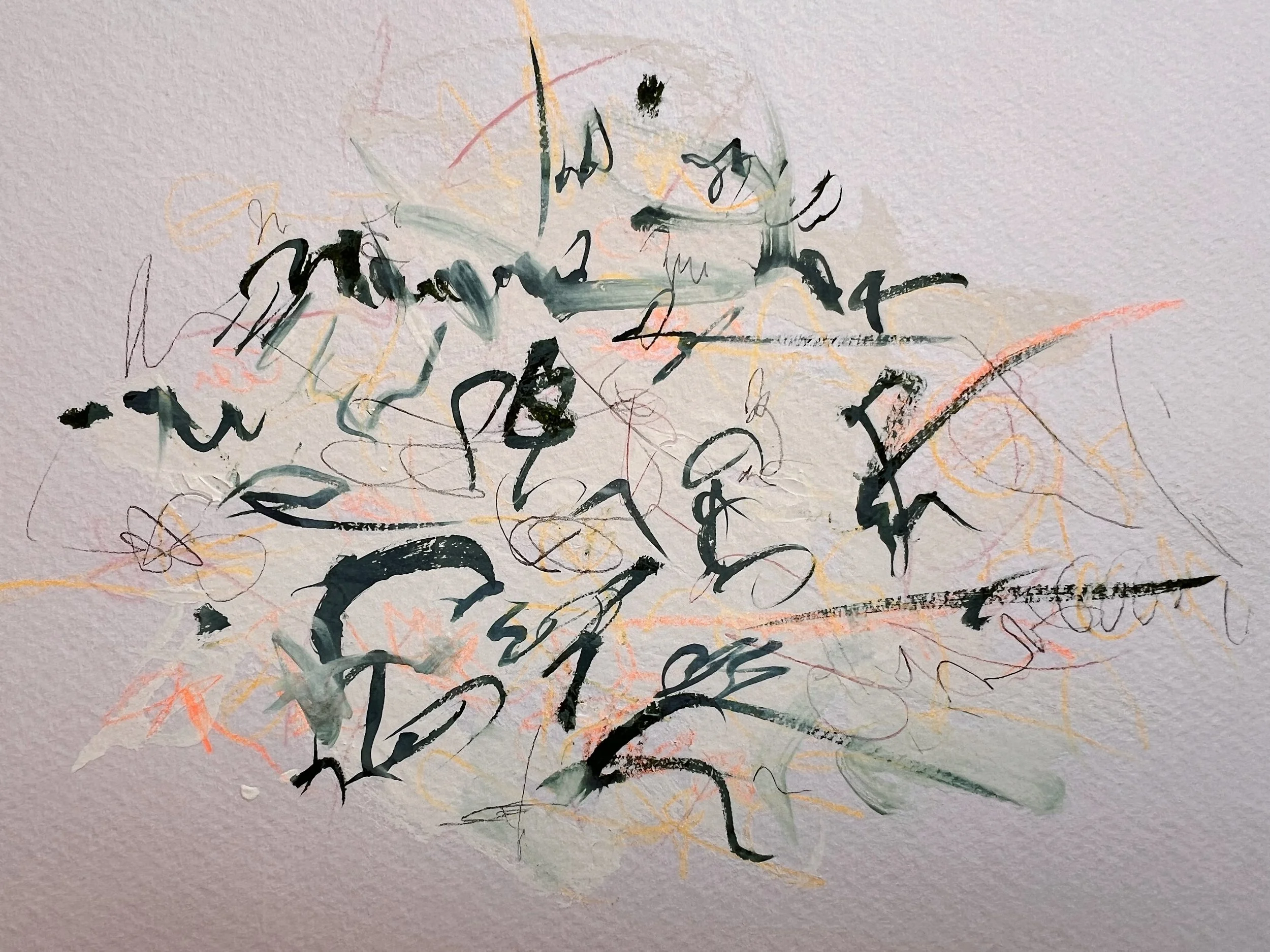 I listen to artists talking while I work (podcasts and online documentaries). At some point their disembodied voices became a language of texture and colour and movement between my ears and my hands. The images that follow are just studies, really. Traces of what formed in the drift, from a place where language no longer mattered.